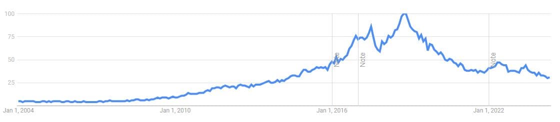 With this term we want to indicate the circumstance where, like most major languages listed in this dataset, a language reached a saturation point, meaning that the number of its speakers no longer grows.